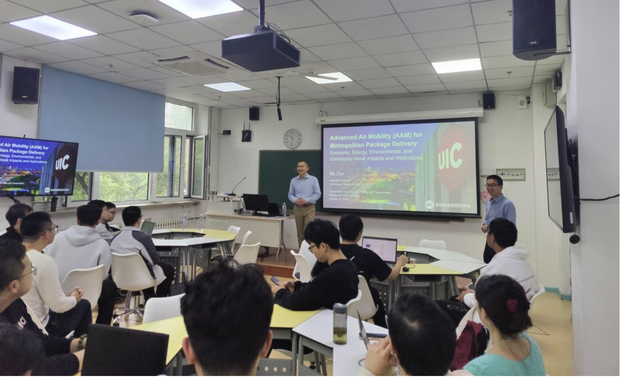 2024年10月14日,交通运输学院邀请罗马第三大学Andrea D’Ariano教授、美国伊利诺伊大学芝加哥分校邹博副教授面向全院师生进行两场国际学术讲座。