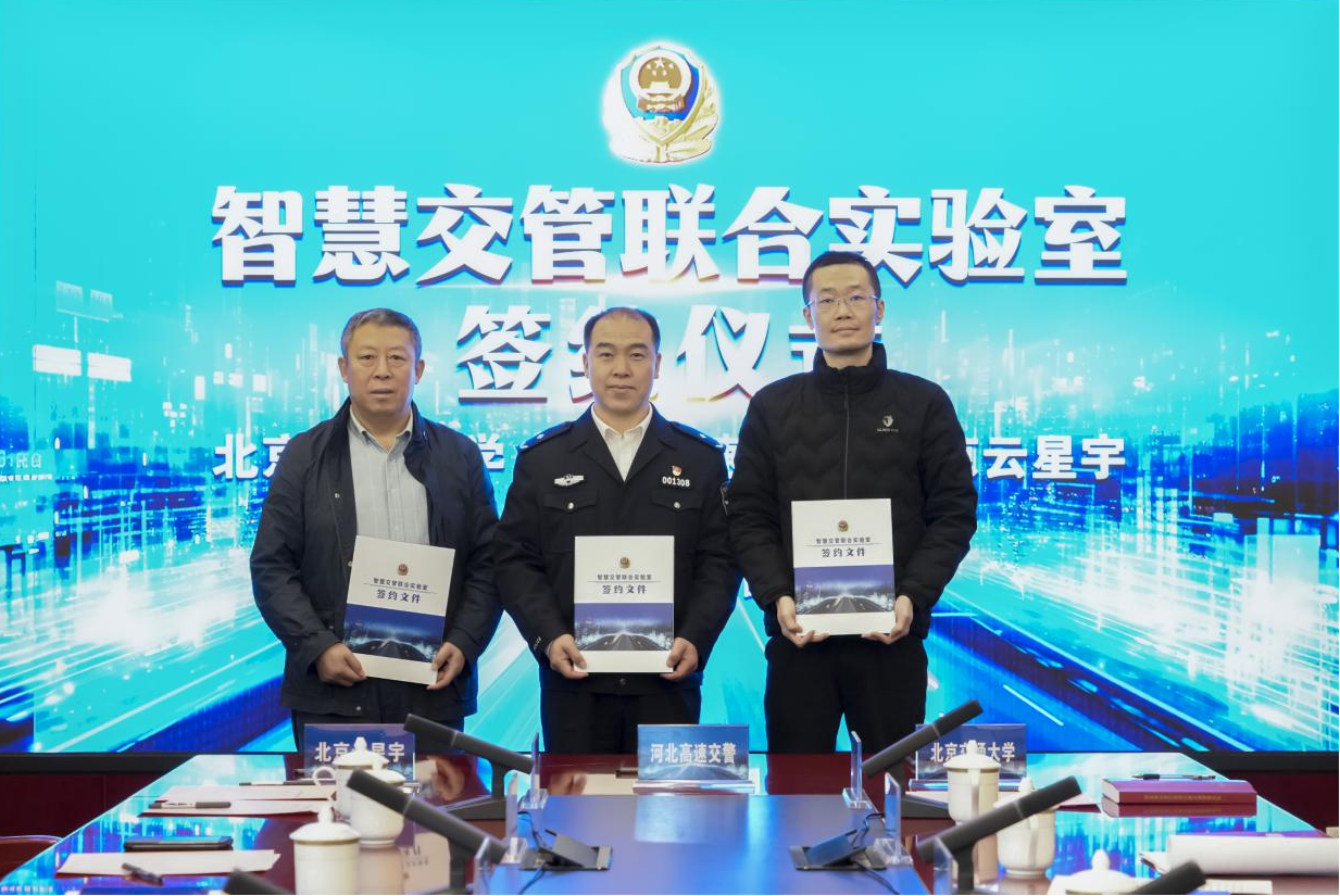 2024年11月26日上午,交通运输学院与河北省公安厅高速公路交通警察总队、北京云星宇交通科技股份有限公司在石家庄顺利举行了“智慧交管联合实验室”签约仪式。交通运输学院副院长唐源洁、河北高速交警总队总队长张凤龙、云星宇公司董事长王占军等出席签约仪式。